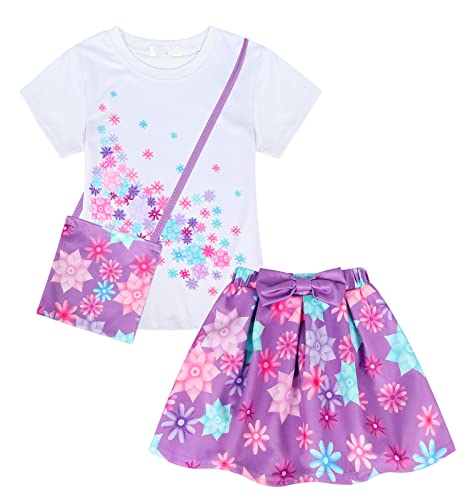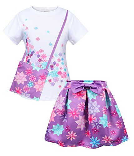 Marendyee Mirabel Costume Vestito per Ragazze Manica Corta Principessa Travestimento Costumi con Borsa Encanto Festa a Tema Carnevale Masquerade Outfit Viola Età 7-8