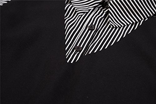 Luna et Margarita Camicetta Camicia Nera Colletto a Strisce Manica Lunga 2 in 1