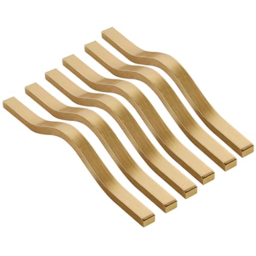 MARGUERASW 6 Pezzi Maniglie Ottone Maniglie Oro Maniglie per Mobili da Cucina - Maniglie Moderne Maniglie Dorate Maniglie Cassetti Maniglie Armadio Distanza dei Fori 128mm