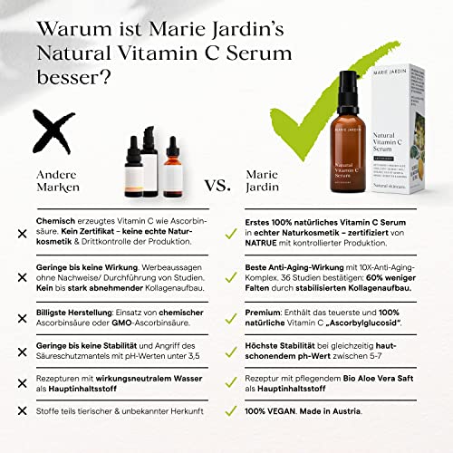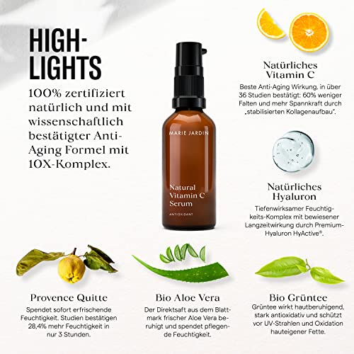 MARIE JARDIN Co - Vitamin C Serum 50 ml Aloe Vera Based - Anti-Ageing Serum, Natural Vitamin C and Antioxidants for Face, Neck and Décolleté