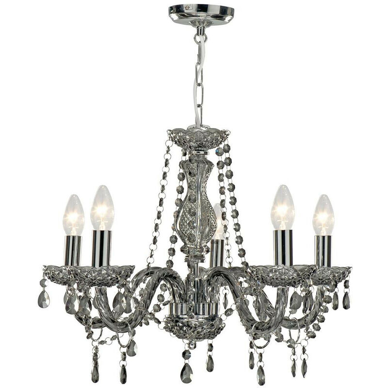 Searchlight Marie Therese Lampadario a 5 luci in vetro grigio fumé | Finitura: grigio | Materiale: acciaio dolce, vetro e acrilico | Grado di protezione IP: IP20 | Altezza: 40 cm | Altezza massima: 93 cm | Larghezza: 55 cm | Tipo di lampada: E14 | Numero di lampade: 5 | Lampadina inclusa: no | Dimmerabile: sì | Peso: 3 kg | Potenza (massima): 40 W