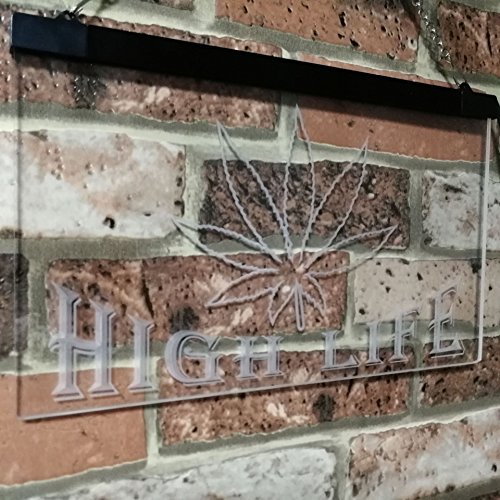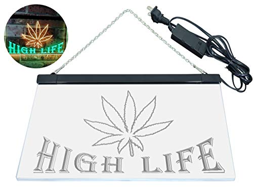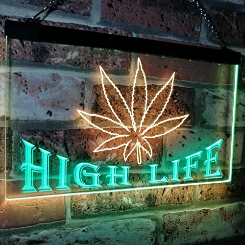 Marijuana Hemp Leaf High Life Dual Color LED Enseigne Lumineuse Neon Sign Vert et jaune 600 x 400mm st6s64-0403-gy