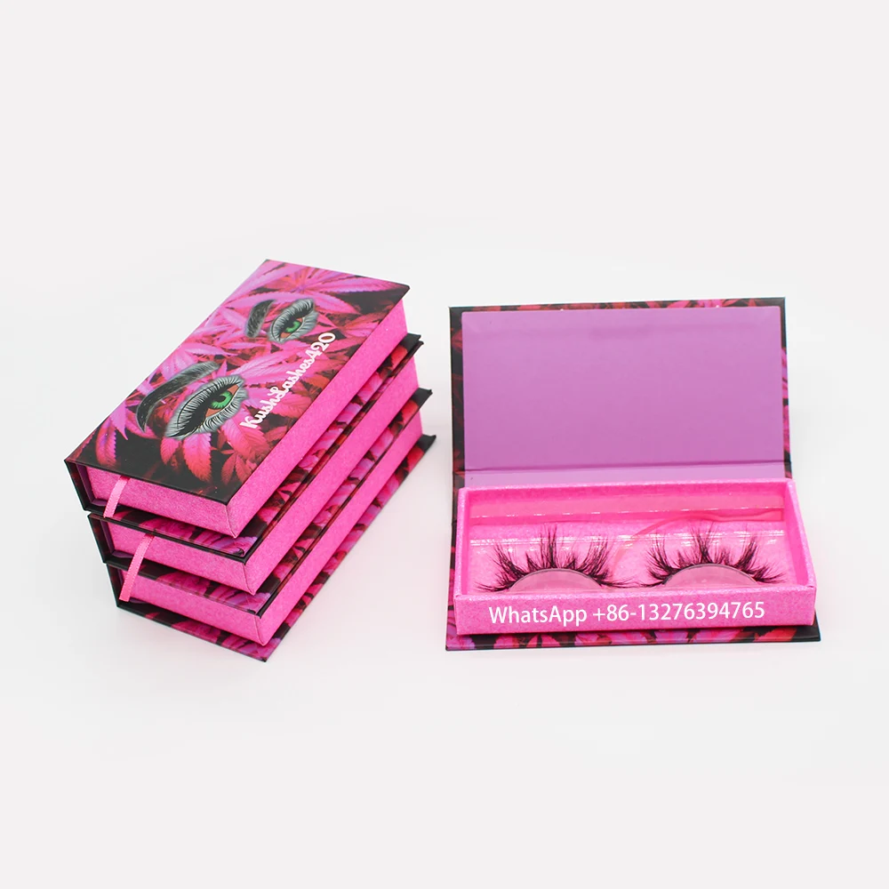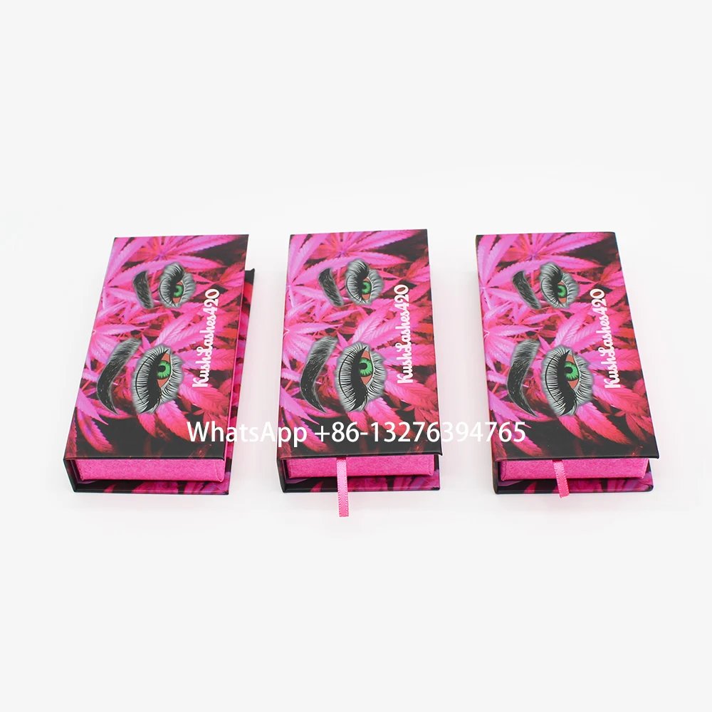 Red Marijuana Leaves Lashes Boxes With Tray Custom Lashbox Packaging With Logo Handmade 100% Real Mink Eyelashes 5D Lashes