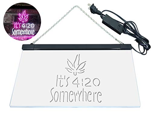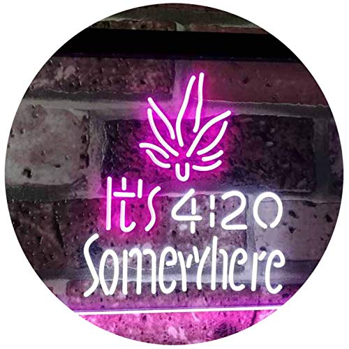 Marijuana It's 4:20 Somewhere Weed High Life Dual Color LED Enseigne Lumineuse Neon Sign Blanc et violet 600 x 400mm st6s64-0404-wp