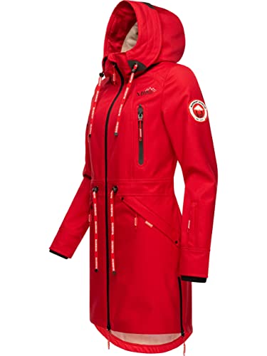 Marikoo Racquellee Giacca da Donna in Softshell, Parka da Mezza Stagione, Giacca Impermeabile con Cappuccio Rosso XS