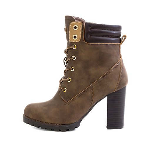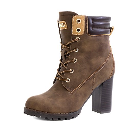 Marimo Worker Boots - Stivaletti da Donna con Lacci e Tacco a Blocchi