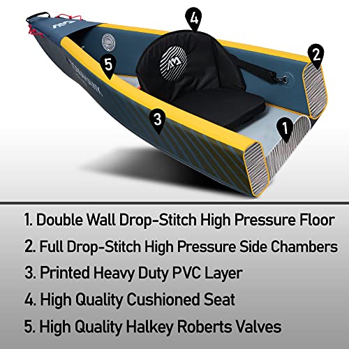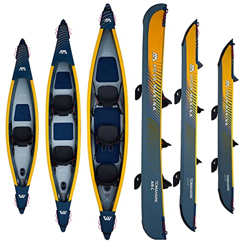 Aqua Marina Tomahawk, AIR-K - Kayak gonfiabile ad alta pressione, per 2 persone, lunghezza 440 cm, colore: blu marino/giallo