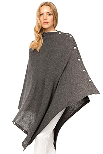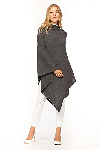 Marine Cashmere - Poncho in Misto Cashmere da Donna con Bottoni, Delicato e Morbido Filato in Cashmere, Made in Italy (Basalto)