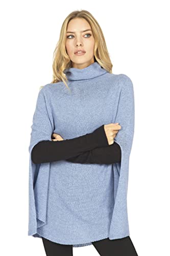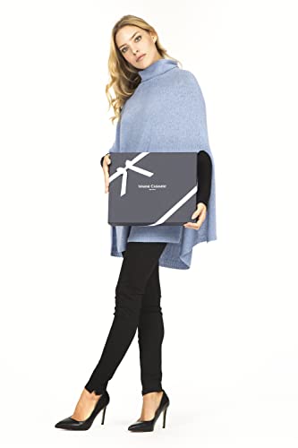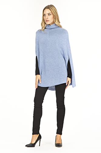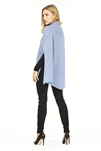 Marine Cashmere - Poncho in misto Cashmere da Donna con collo alto e spacchi laterali, Delicato e Morbido Filato in Cashmere, MADE IN ITALY (Celeste)