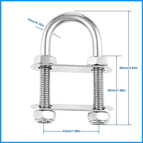 2PCS marine Boat Stern Bow Eye Tie Down Cavallotto tenditori in acciaio INOX 304, M10 * 90 * 130 * 36 mm