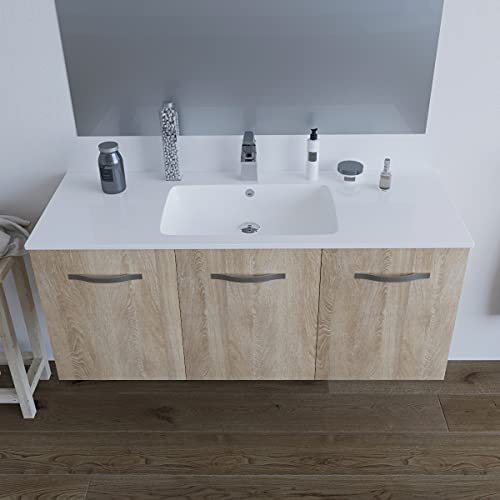 MarinelliGroup Mobile bagno SOSPESO 120 cm con lavabo in ceramica e specchio con 3 ante ROVERE CHIARO BUMA 8120