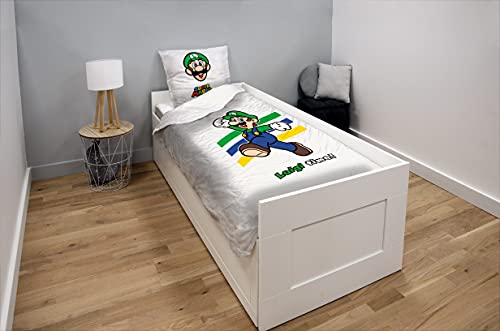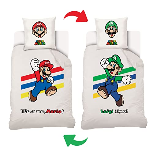 Mario - Copripiumino Its-a me Mario Luigi reversibile Ado 140 x 200 cm + 1 federa per cuscino 63 x 63 cm, 100% cotone, colore: bianco
