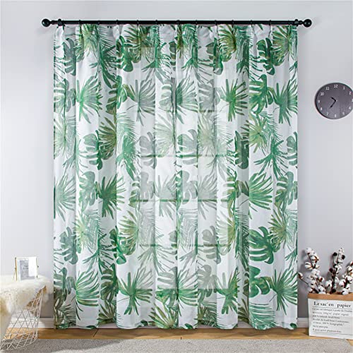 MARITOWN Voile Curtain Panel Jungle Tropical Palm Leaf Patterned Polyester Fabric Semi Sheer Tende per Bambini Camera da Letto Soggiorno Un Pannello 100 X 200cm Drop