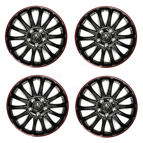 MARK8SHOP 4pcs plastica universale set di 35,6 cm rosso nero auto sport copricerchi di coprimozzi