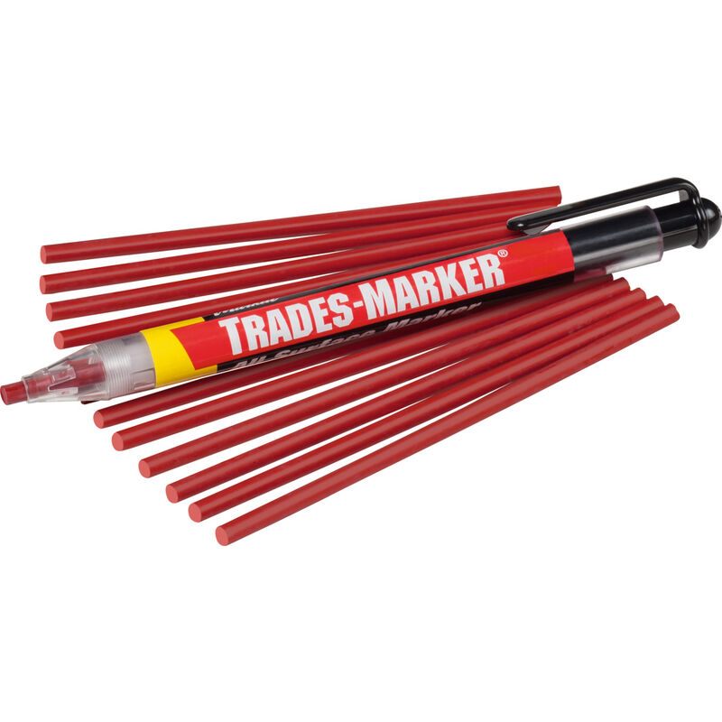 Evidenziatore ricaricabile per evidenziazioni resistenti alle intemperie e ai raggi UV. Resistente all'abrasione, ideale su superfici lisce, ruvide, ossidate o sporche. Fornitura: 1 supporto, 12 mine (⌀ 3 mm). Dati tecnici Tipo di prodotto Stick a vernice Colore inchiostro rosso