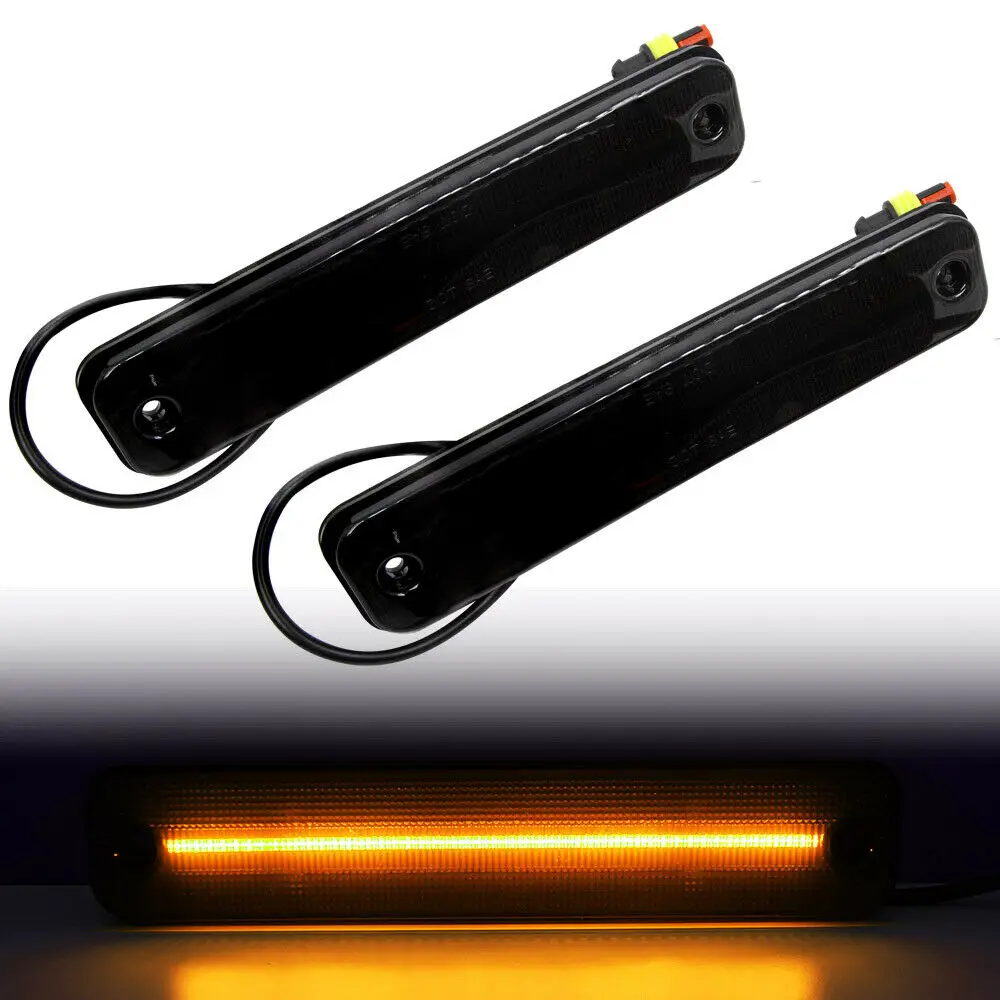 Full LED Side Marker Light Kit For 2003-2009 Hummer H2 Smoked Lens Amber/Front + Red/Rear Replace OEM No: 25952319 Fender Lamps