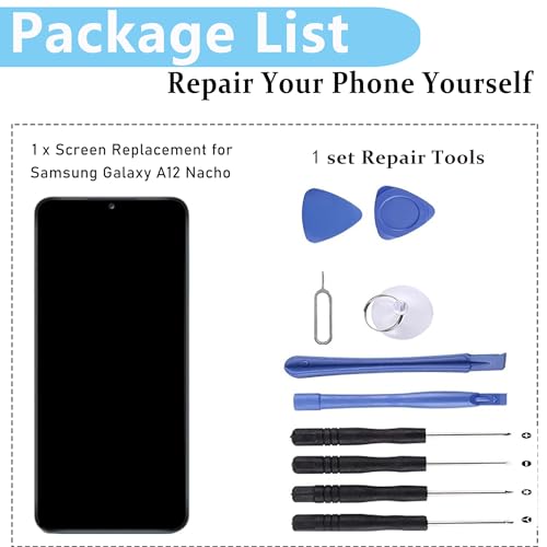 Compatibilità: questo schermo di ricambio per Samsung A12 è solo per Samsung Galaxy A12 da 6,5 pollici, compatibile con il modello SM-A127F, SM-A127F/DS, SM-A127F/DSN, SM-A127M. Non adatto per altri modelli o altre marche. Si prega di confermare attentamente il modello prima di ordinare.