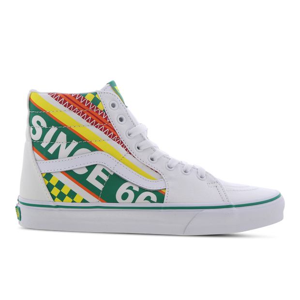 Amp Up Your Look Treat yourself with the Vans Sk8-Hi Vans Market. First introduced in 1978 as Style 38, the Sk-8 Hi brought a world of recognition to the Vans world. The suede and canvas upper provides durability and a premium look, while the padded collars bring in plush comfort. Sporting the classic lace-up design, the Sk8-Hi also includes re-enforced toe caps and signature rubber waffle outsoles. Vans Sk8-Hi Vans Market Features: * High-top, side-stripe design * Suede and canvas upper * Lace-up closure * Re-enforced toe caps * Supportive padded collars * Signature rubber waffle outsoles