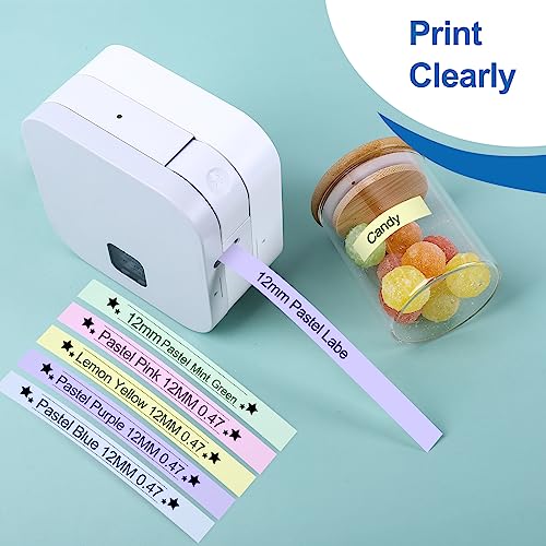 Compatibile con Brother P Touch 0,47 pollici 12mm Tze TZ pastello. Modello e colore: TZe-MQ531 nero su blu pastello, TZe-MQE31 nero su rosa pastello, TZe-MQF31 nero su viola pastello, TZe-MYY31 nero su giallo limone, TZe-MQG31 nero su verde menta. Quantità: 5 confezioni.