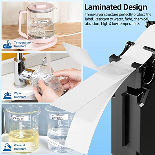 Il nastro per etichette laminate Brother P-Touch compatibile con gli standard è durevole, resistente a olio, acqua, alte temperature, corrosione e non macchia. Il nastro per etichettatura è adatto anche per uso interno ed esterno in condizioni meteorologiche avverse.