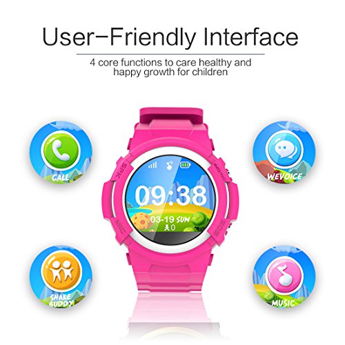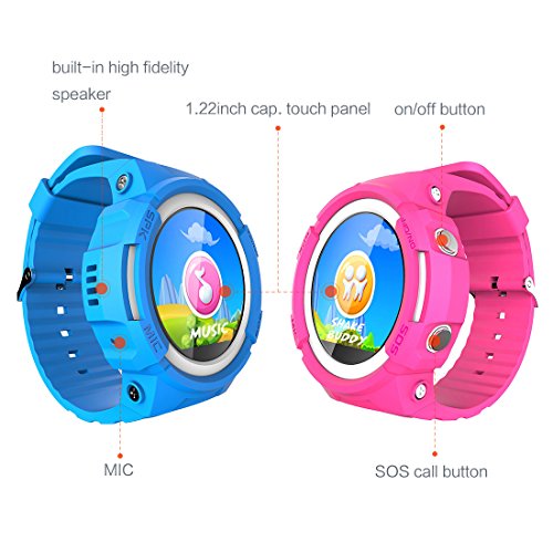 Markrom Kids Smart Watches with SIM Card Slot, GPS Tracker Phone Voice Calls Music SOS Waterproof, for Boys Girls, 1.22" Round Touchscreen - Pink