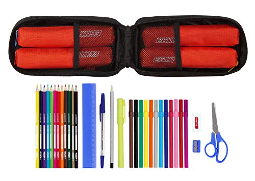 Astuccio ufficiale Safta Marc Marquez con 4 astucci inclusi pieni di utensili scolastici.