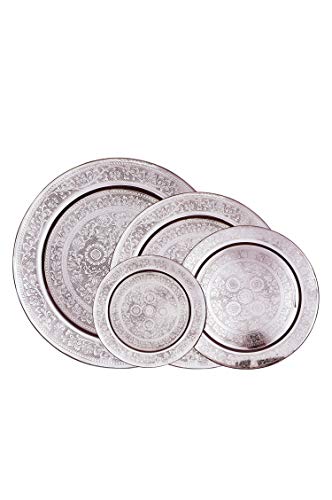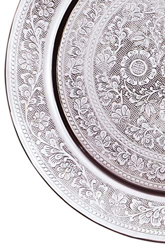 Marrakesch Orient & Mediterran Interior Tondo Vassoio Orientale in Ottone AFAF 30cm - tè Marocchino Color Argento - Decorazione Orientale sul Tavolo di Servizio