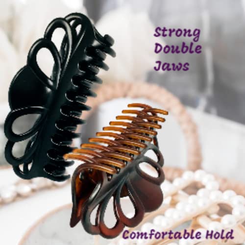 Marrie Fermaglio per capelli extra large, da donna, spesso, lungo, riccio, antiscivolo, grande tenuta, con morsetto, accessorio per lo styling dei capelli francesi, 14 cm di lunghezza (nero e marrone)