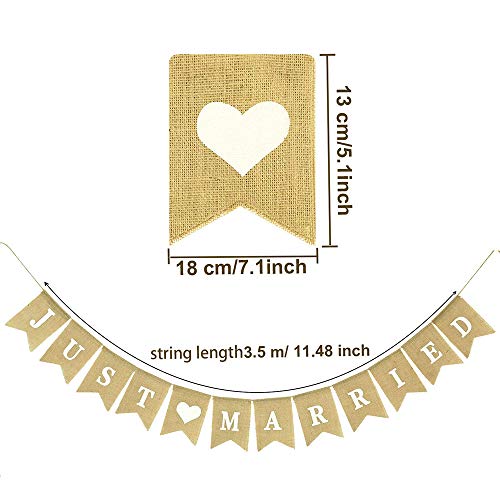 ❤Progetto di design: questo banner è abbinato a 12 pezzi di bandiere a coda di rondine, stampati con "JUST MARRIED" e motivi a forma di cuore, pieni di stili retrò e country, semplici ma classici.