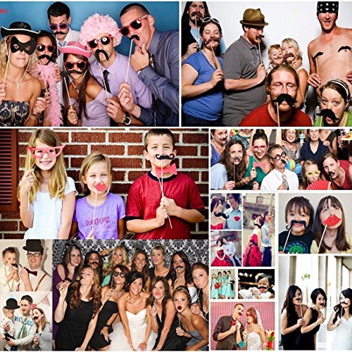 JZK 58 pezzi foto booth props photo booth photobooth foto booth, contiene cartoncini occhiali, baffi, labbra, cappello, cravatta, e altri forme divertenti.