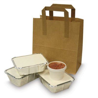 25 x Marrone CARTA CIBO / DA ASPORTO/sacchetti per feste con piatto MANIGLIE - Marrone, Medium: 8.5" x 9.5" x 4"