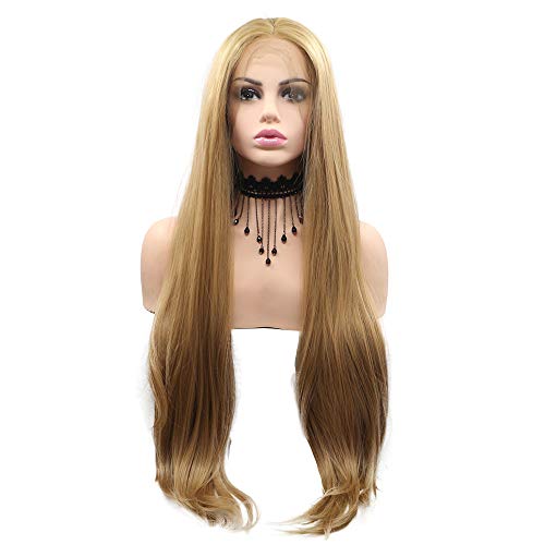 Marrone chiaro sfumato Silky straight Lace Front Wigs Half Hand Tied Heat Resistant Fiber Hair per donna