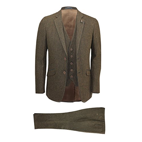 Tuta da uomo marrone 3 pezzi in misto lana tweed vintage Cavani marrone Brown
