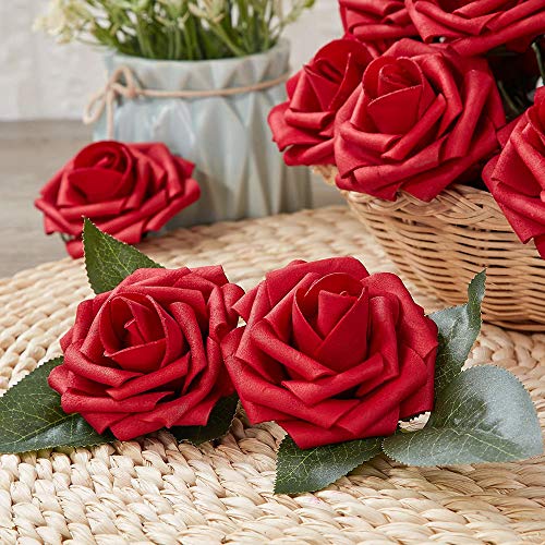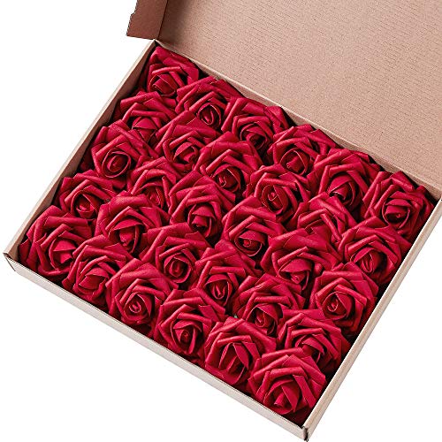 Marry agendo artificiale fiore rosa, 30Pcs Real touch rose artificiali per bouquet DIY wedding party Baby Shower Home Decor, Dark Red, Rose head approx. 3-4 inches
