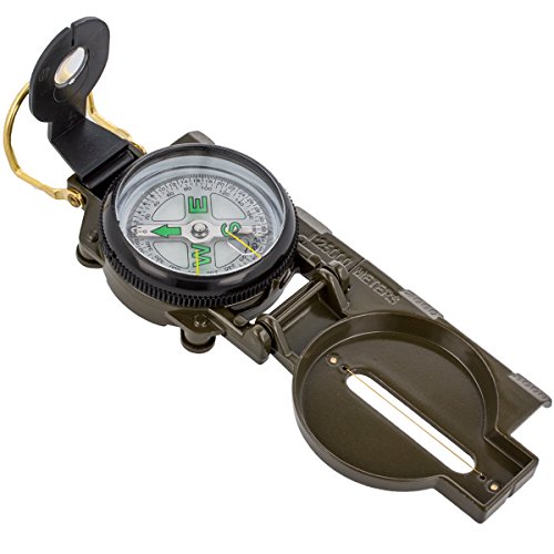 Marschkompass - Bussola da escursionismo, colore militare, chiusura automatica con rallentamento