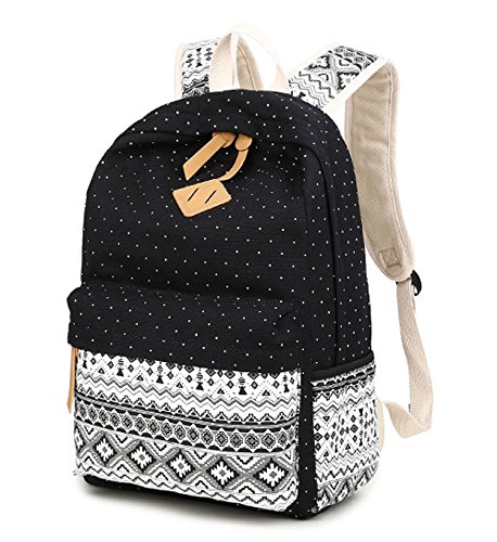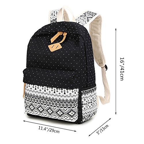 Marsoul pizzo Pois coreano signore di modo di spalla del computer portatile Sacchetti di scuola di stile casual leggero Daypack Canvas zaino da viaggio (Gypsy Punto Nero)