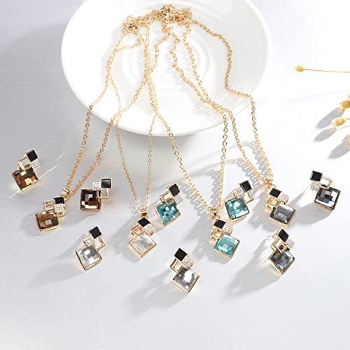 MARSPOWER Ciondoli in Cristallo Collana a Forma Geometrica Set di Orecchini Collana Quadrata Grande Set di Gioielli con Perno abbinati per Donna - Oro + Blu