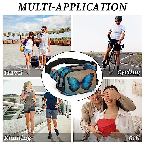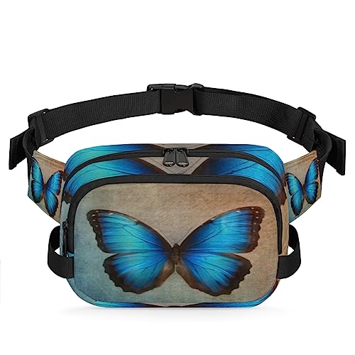 Marsupio da donna e uomo blu con farfalla marsupio marsupio alla moda borse a tracolla quadrato con cinghia regolabile per corsa, escursionismo, viaggi allenamento, Multicolore, Taglia unica