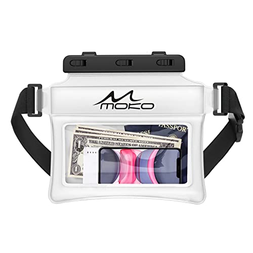 MoKo Marsupio Impermeabile, Galleggiabile Marsupio con 3 Chiusure, Tracolla Regolabile, Compatibile con iPhone 13/13 PRO Max/12/12 PRO Max/11 PRO Max, Galaxy S21 Ultra/S9/Note 10 Plus, Bianco Opaco