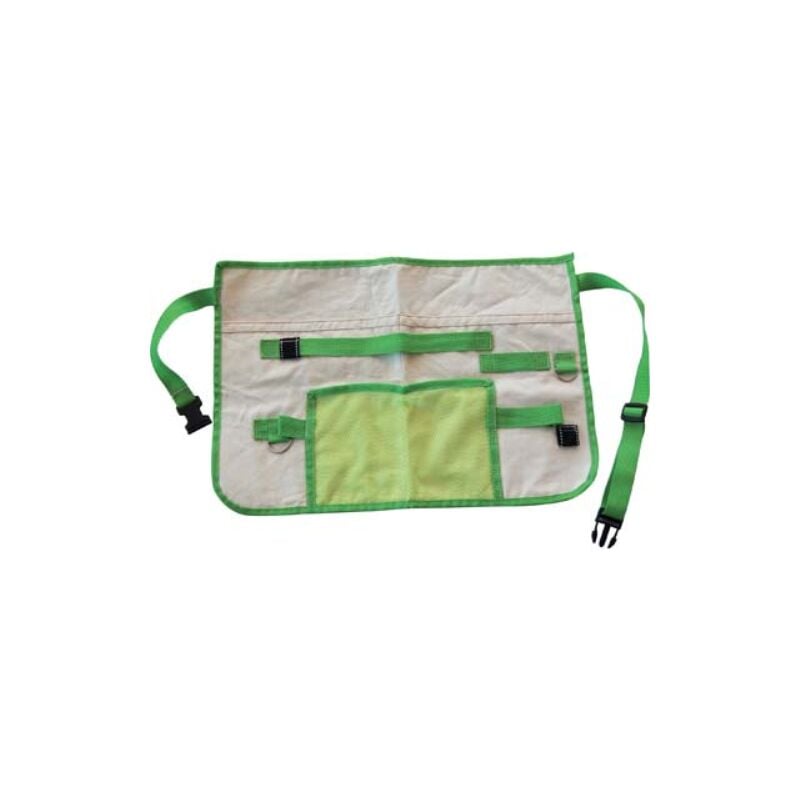 Con 3 ampie tasche e lacci per l'aggancio degli attrezzi da lavoro. Cinta con clip di chiusura e regolazione.