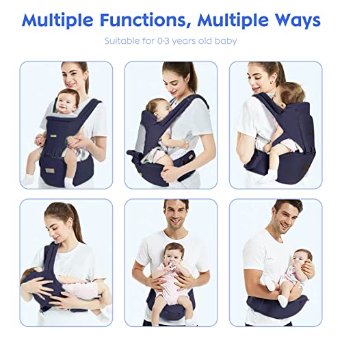 Marsupio Neonati Ergonomico con Sedile-Regolabile-Puro cotone Leggero e Traspirante |Multiposizione Fascia Porta Bebe:Dorsale,Ventrale,Natiche ad Neonato e Bambino da 3 a 36 Mese
