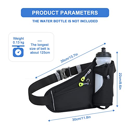 Marsupio Con Porta Borraccia, Marsupio Da Trekking Impermeabile Con Cerniera, Nastro Riflettente Per Corsa, Viaggio, Jogging, Escursionismo (Borraccia Non Inclusa) (Black)