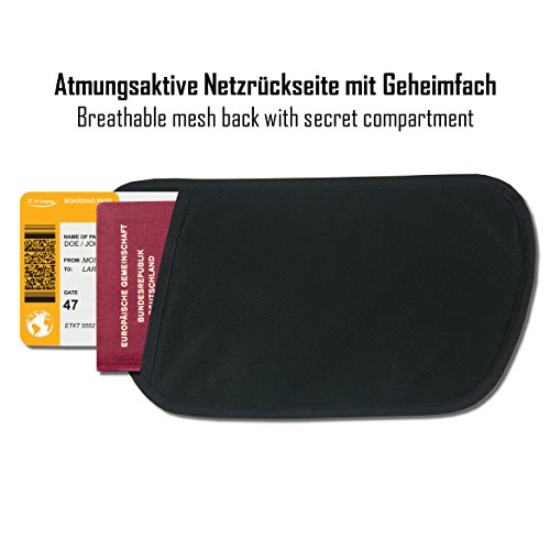 ✅, ATTILLATO, IDROREPELLENTE - Per via del design sottile, il nostro marsupio può essere indossato e reso completamente invisibile sotto i vestiti e, grazie alla morbida e traspirante maglia posteriore, si adatta perfettamente al corpo - senza provocare sudorazione o irritazioni. Il lato esterno rivestito è anche idrorepellente e protegge così i Vostri oggetti di valore dall'umidità e dal sudore.