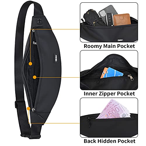 Marsupio Sportivo Marsupio per Uomo o Donna,Marsupio con 3 Tasche Marsupio Cintura Regolabile Singola Spalla per Running Corsa Ciclismo Escursionismo Casuale Bicicletta (Nero)