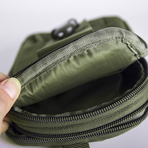 Marsupio Tattico Borsa Sacchetto,LUZWAY Borsello MOLLE EDC Pouch 1000D Nylon Da Cintura Di Pronto Uso Per Gadget ed Utensili Con Extra Moschettone In Alluminio, Colore Verde Militare