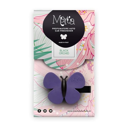 Marta La Farfalla Black Orchid Tris Deodorante Auto: Profumo Orchidea Nera e Profumatore Diffusore per Macchina - Set 3 Pezzi