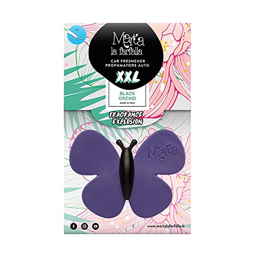 Marta la Farfalla Black Orchid XXL - Tris Deodorante Auto: Profumo Orchidea Nera e Profumatore Diffusore per Macchina XXL - Set 3 Pezzi