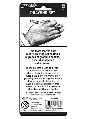 MONT MARTE Set da Disegno, set Matite in Grafite - 8 pezzi (6 Matite in Grafite, 1 Temperamatite, 1 Gomma) - matita, forniture artistiche, matite da artista, ideale per bozzetti e disegni