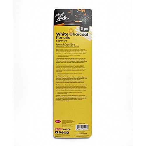 Mont Marte Matite Carboncino - Bianco - 3 Pezzi - Medio - Ideali per Disegni impressionanti