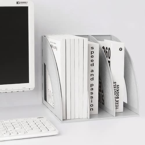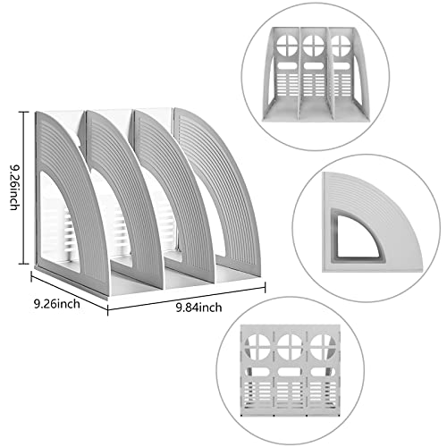 Marte Vanci Organizer da scrivania, robusto, con 3 scomparti aperti, porta riviste, in plastica, divisori per documenti, espositore e portaoggetti, colore grigio chiaro, 2 pezzi